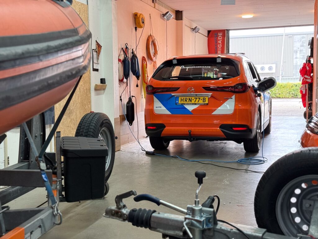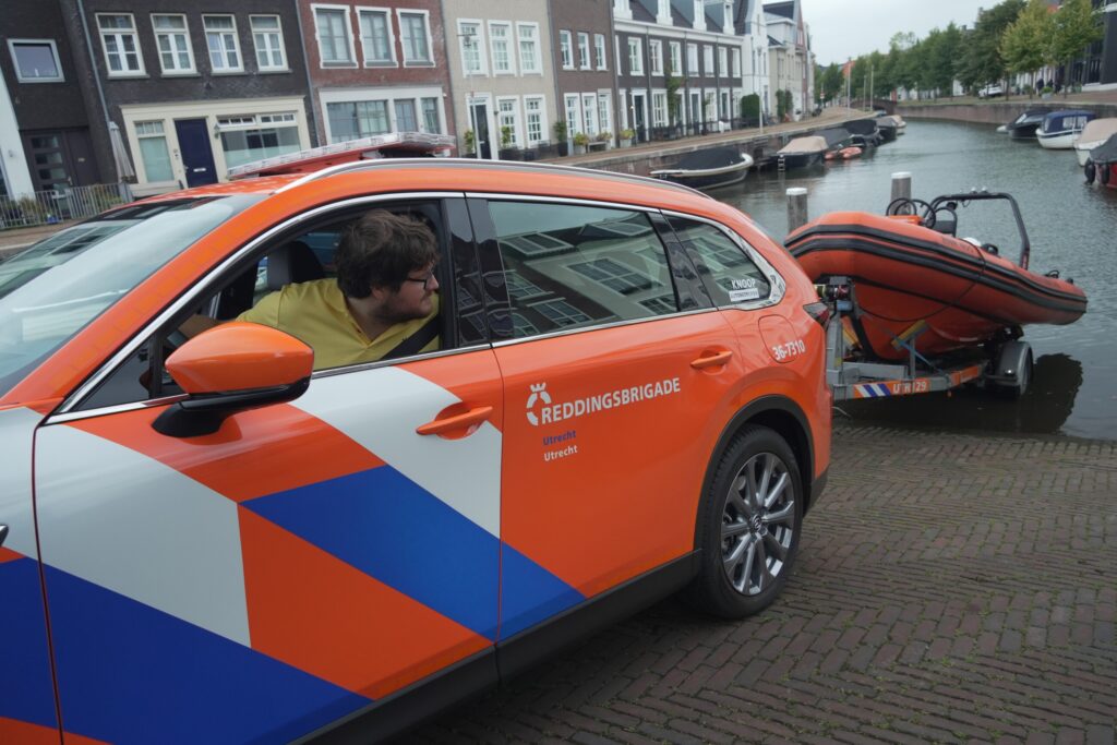 “Dat klopt zeker! Reddingsbrigade Utrecht is opgericht op 21 januari 1918. We zijn dus al een dikke honderd jaar oud. In die tijd zijn we uitgegroeid tot een vaste waarde binnen de omgeving van Utrecht voor waterhulpverlening. In 2020 begon ons verduurzamingsproject. De eerste stap was een elektrische boot. Dat beviel zo goed, dus dat werden er uiteindelijk drie, waarvan één snelle boot. Om onze energieconsumptie nog verder te verlagen hebben we in het boothuis ook ledlampen en infraroodpanelen geplaatst. We willen van A tot Z verduurzamen, niet alleen met ons materieel, maar ook de cultuur. We beperken ook het gebruik van plastic flessen. Iedereen heeft zijn eigen stalen fles. In 2022 hebben we onze eerste plug-in hybride gekocht, een Outlander PHEV. We hadden nog een oudere auto met een dieselmotor. Die nu is vervangen door de nieuwe Mazda CX-80 Plug-in Hybrid.”