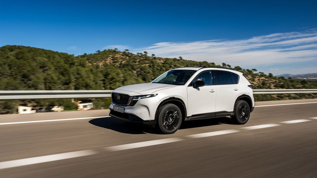 De Homura positioneert zich als sportief-luxe topversie. Deze uitvoering – die een vanafprijs heeft van 51.990 euro – herken je aan zwart uitgevoerde 19-inch velgen, specifieke Signature-verlichting voor en achter en donkere accenten in de bumpers. Binnenin is de CX-5 Homura voorzien van zwart lederen bekleding. Extra’s zoals een 15,6-inch infotainmentscherm, adaptieve LED-koplampen en stoelventilatie ronden het geheel af.
